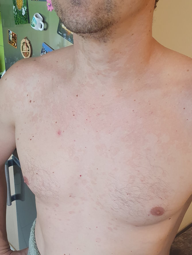 2. āda reaģē – tā niez un dedzina veidojot sākumā gaišus, vēlāk sarkanīgus pleķus pataisot mani par “dalmācieti”.